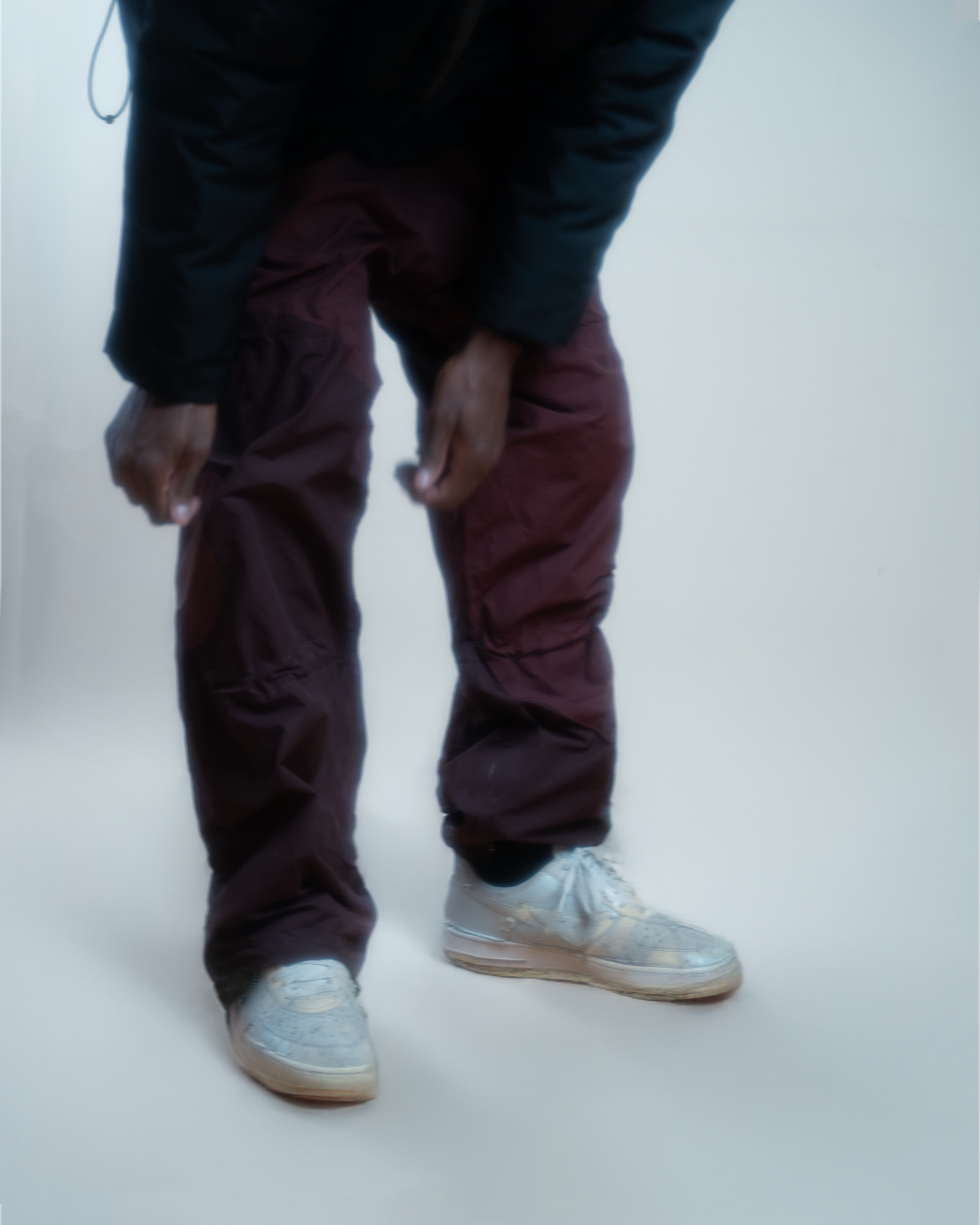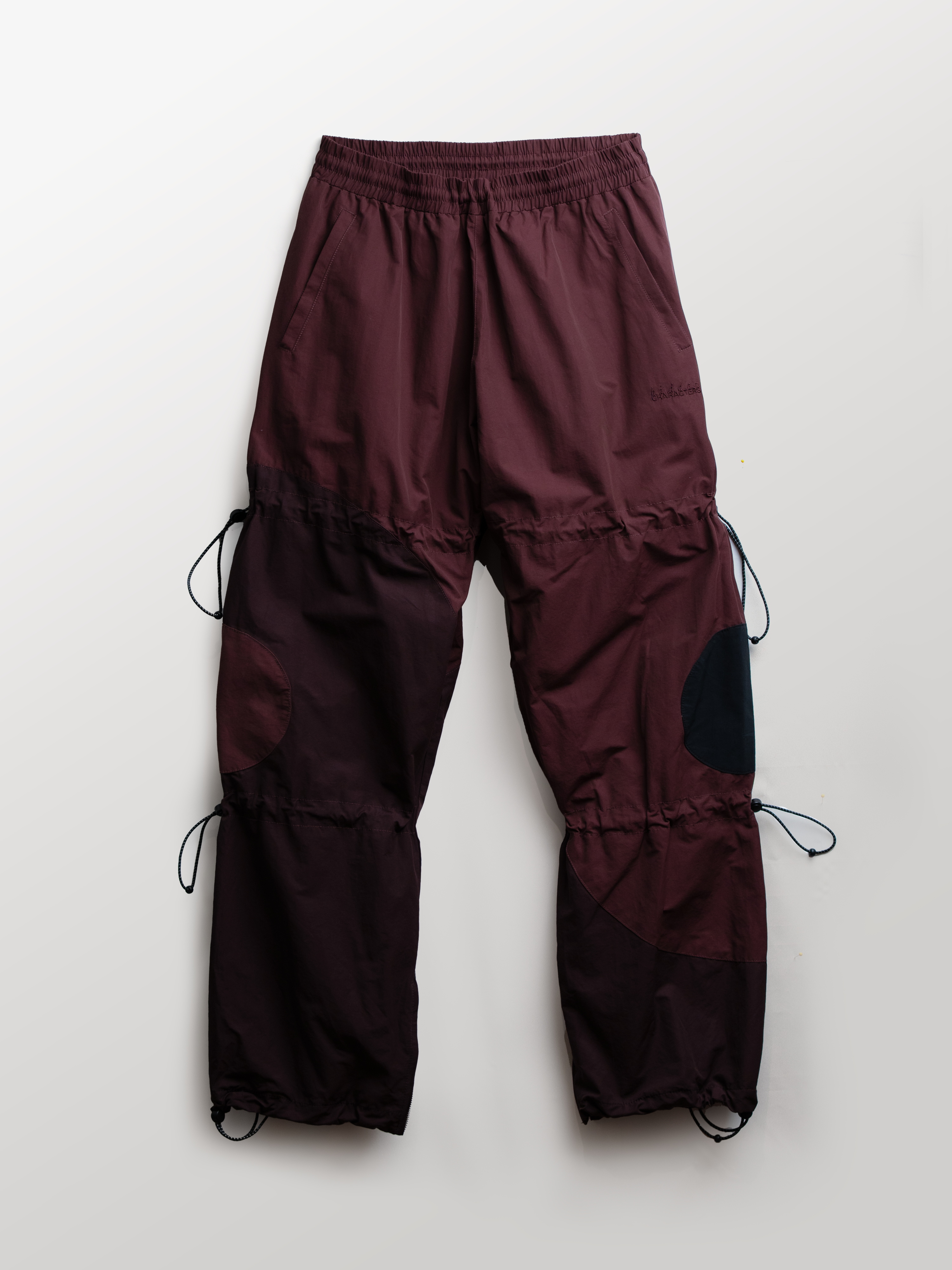 6 cinch pulls at thigh, shin, and ankle enabling control of silhouette